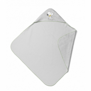 Wir empfehlen das bestickte und angenehm griffige Baby Handtuch mit Kapuze und Waschlappen mit den Maßen 80x80 cm / 21x15 cm. SNOOPY.